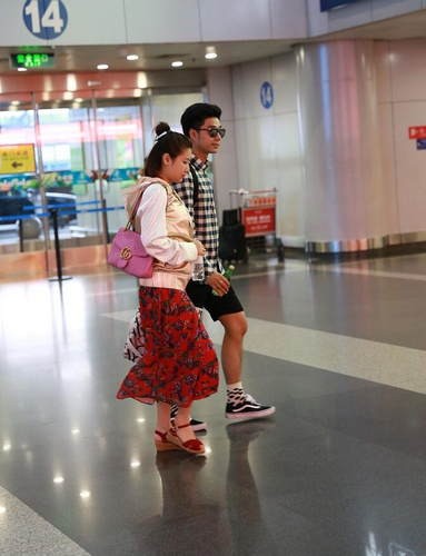 袁成杰与老婆陈芊芊现身机场 娇妻红裙抢镜