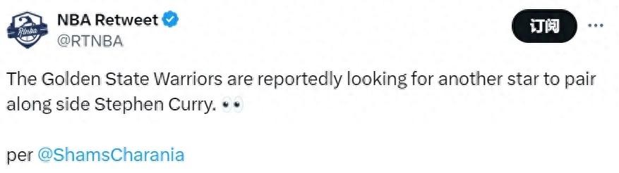 Shams:勇士正在寻求另一名全明星球员,来搭档库里,将在未来几周和交易截止日期前的几个月内做出决定。