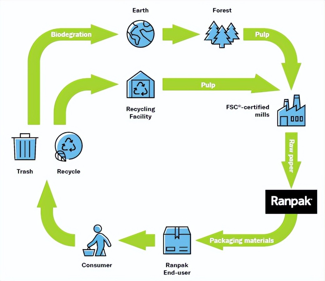Ranpak的纸制品展示了一个循环的产品生命周期