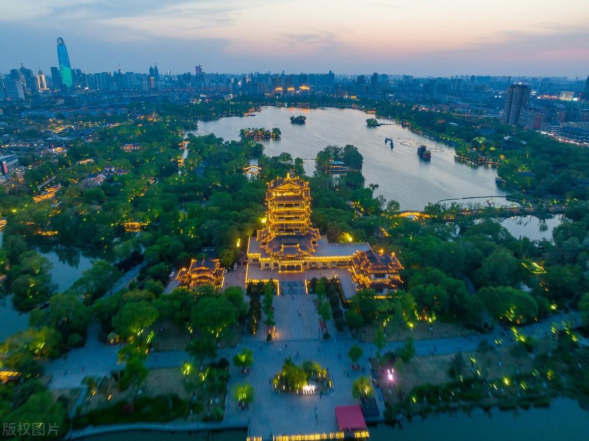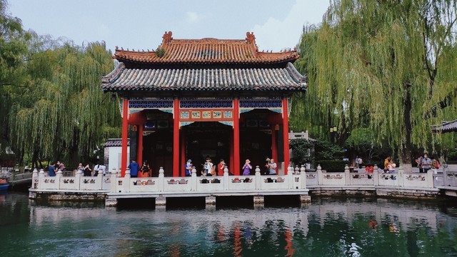5、大明湖景区,堪称济南的天然明信片。湖水清冽如玉,湖面宛如画卷般舒展,处处都流淌着浓厚的诗意。每一步的行走,仿佛能听到风中的歌声,每一息的呼吸,都能感受到济南的独特韵味。