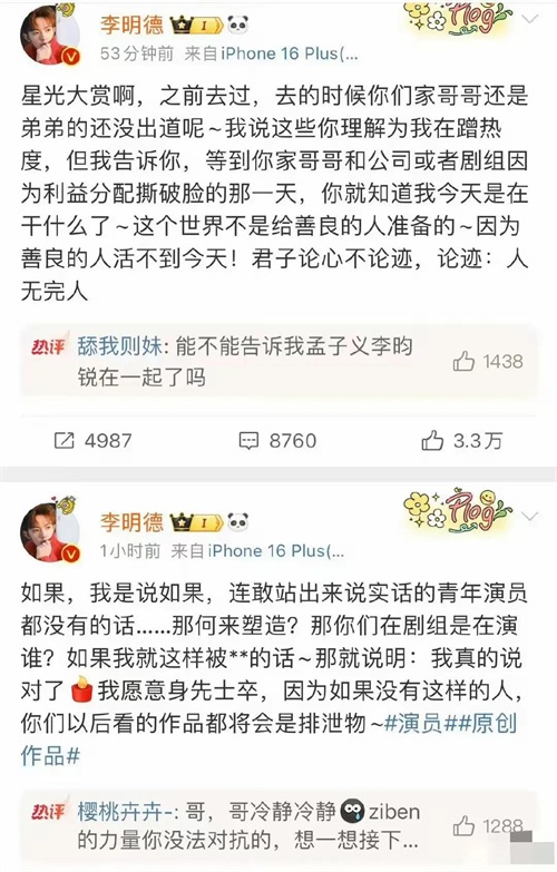 近日,演员李明德在微博上爆料,称马天宇《三人行》时存在职场霸凌行为。具体而言,李明德指出马天宇在拍摄过程中多次迟到,并让所有演员在严寒中等待,这一行为严重影响了剧组的拍摄进度。此爆料一经发出,立即引发了广泛关注和讨论。