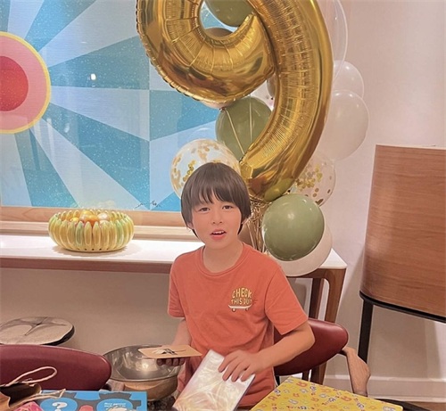 名模周汶锜儿子9岁生日,五官精致颜值高,两度原谅外籍老公出轨