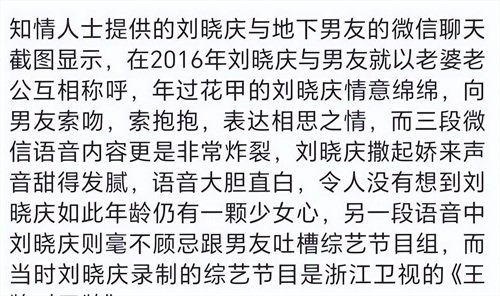 令人意外的是,这段私密关系的曝光源于双方的微信聊天内容泄露。聊天记录显示,两人互诉衷肠,内容涉及身体接触等隐私话题。刘晓庆在对话中也流露出对现任婚姻的不满情绪。