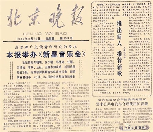 1980年,《北京晚报》举行了“新星音乐会”,目的就是为了发掘国内更多有才华的歌手。