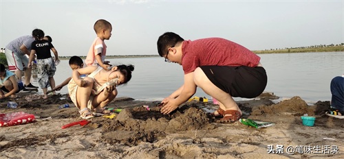 在这里陪孩子一起玩沙子,可以捞鱼。还有不少人在钓鱼。专业钓者建议白天还是不要过来了,沙滩玩的孩子们很多,钓鱼应该也不能尽兴。