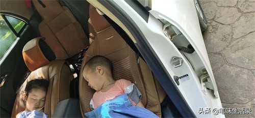 把主副驾驶座椅放下来,打开空调,睡在里边刚刚好。千万注意要打开些车窗,防止一氧化碳中毒,家长时不时去一定要不时去检查下孩子们状况。