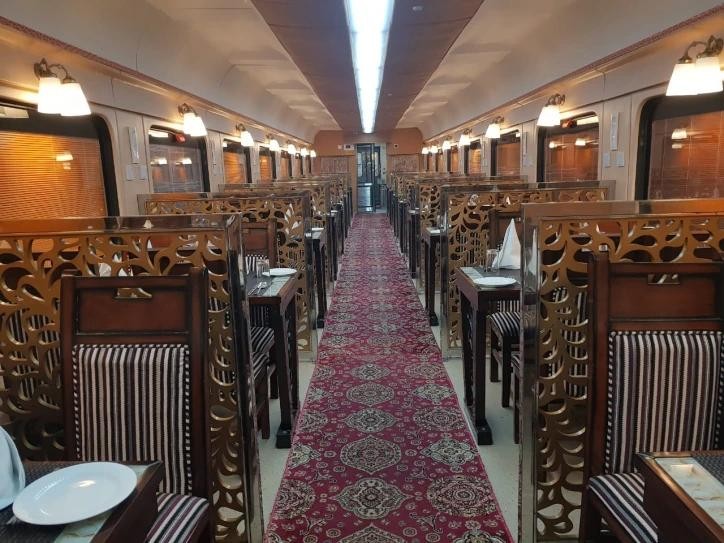 印度豪华列车,上面设有高级餐厅、现代化厨房、闭路电视和淋浴房。