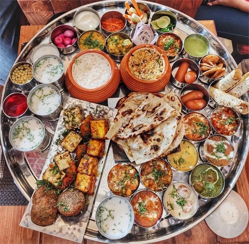 豪华的印度大餐,摆在最中间的是印度飞饼。