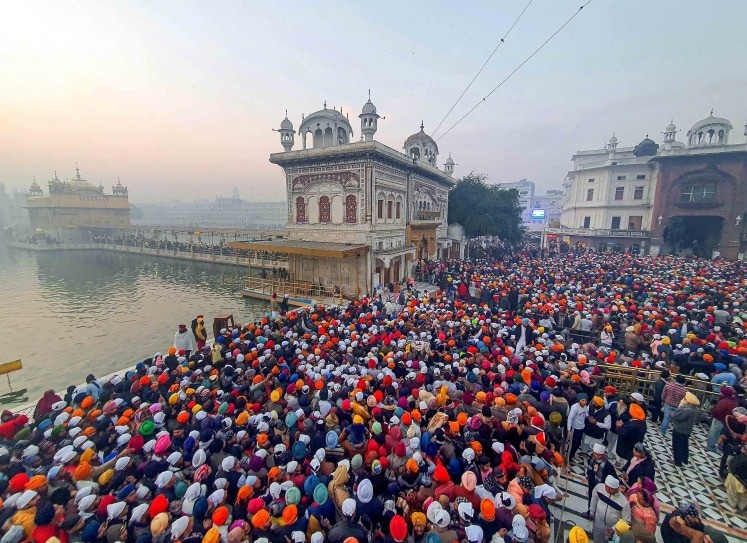 锡克教信徒聚集在阿姆利则金庙顶礼,每个人都以头巾作为信徒身份的标志。
