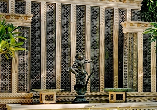 里面大量使用水晶、大理石和珍珠母石,有9部电梯直达各个楼层。