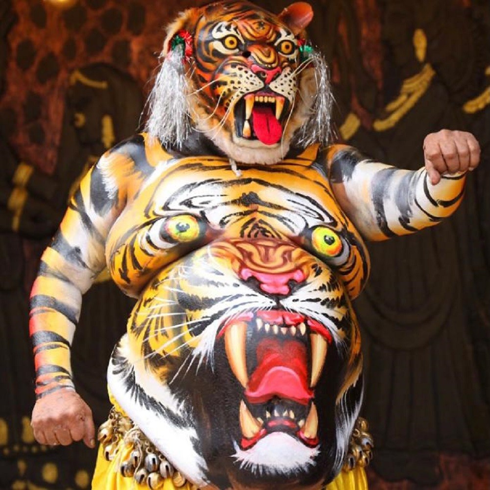 印度戏中的人体彩绘,老虎在1964年成为印度的国兽。