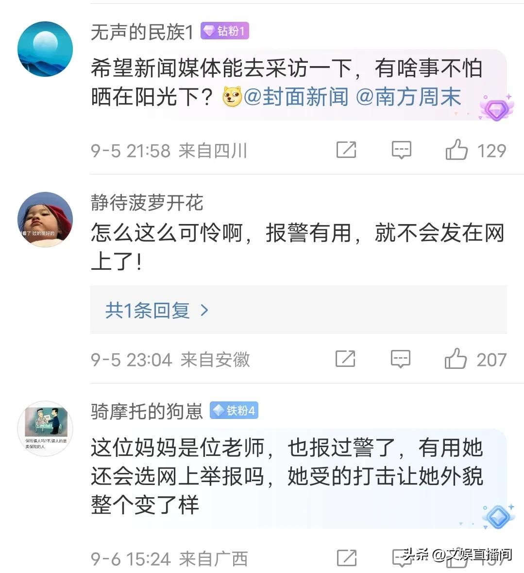 有网友说:这位妈妈是位老师,也报过警了,有用她还会选网上举报吗,她受的打击让她外貌整个变了样。