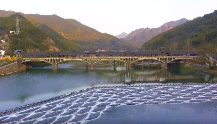 一条蜿蜒曲折的堰坝上,水流倾泻而下,在层层叠叠的蓄水池里拍起层层水花,仿佛闪亮的龙鳞在水中起舞。这就是富阳区乡村“网红”景点“龙鳞坝”。