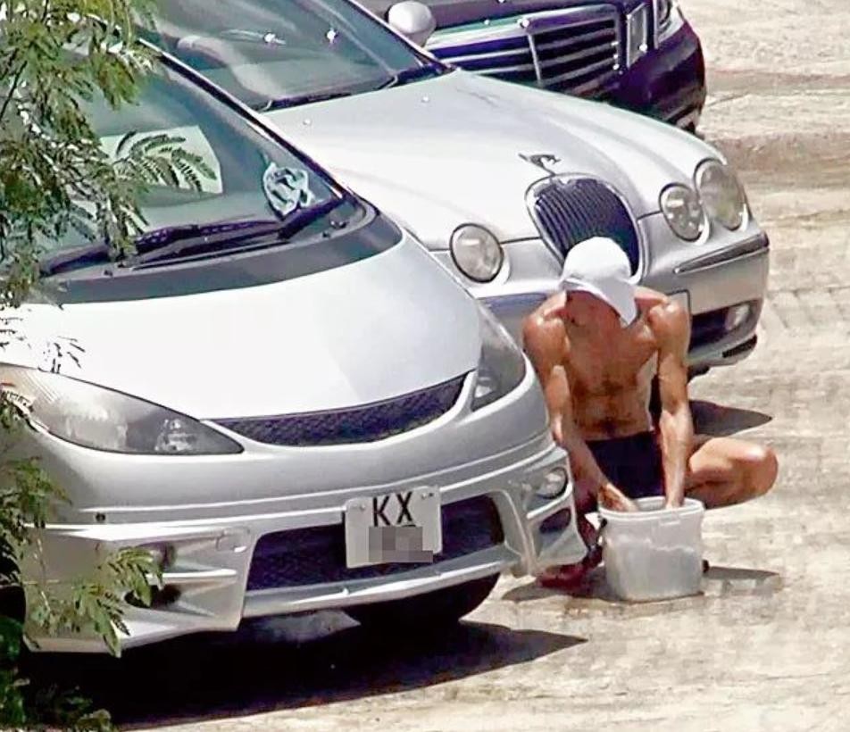 也是,江华干啥啥不行后,也被狗仔拍到当起家庭主夫,为省钱自己擦车的画面。