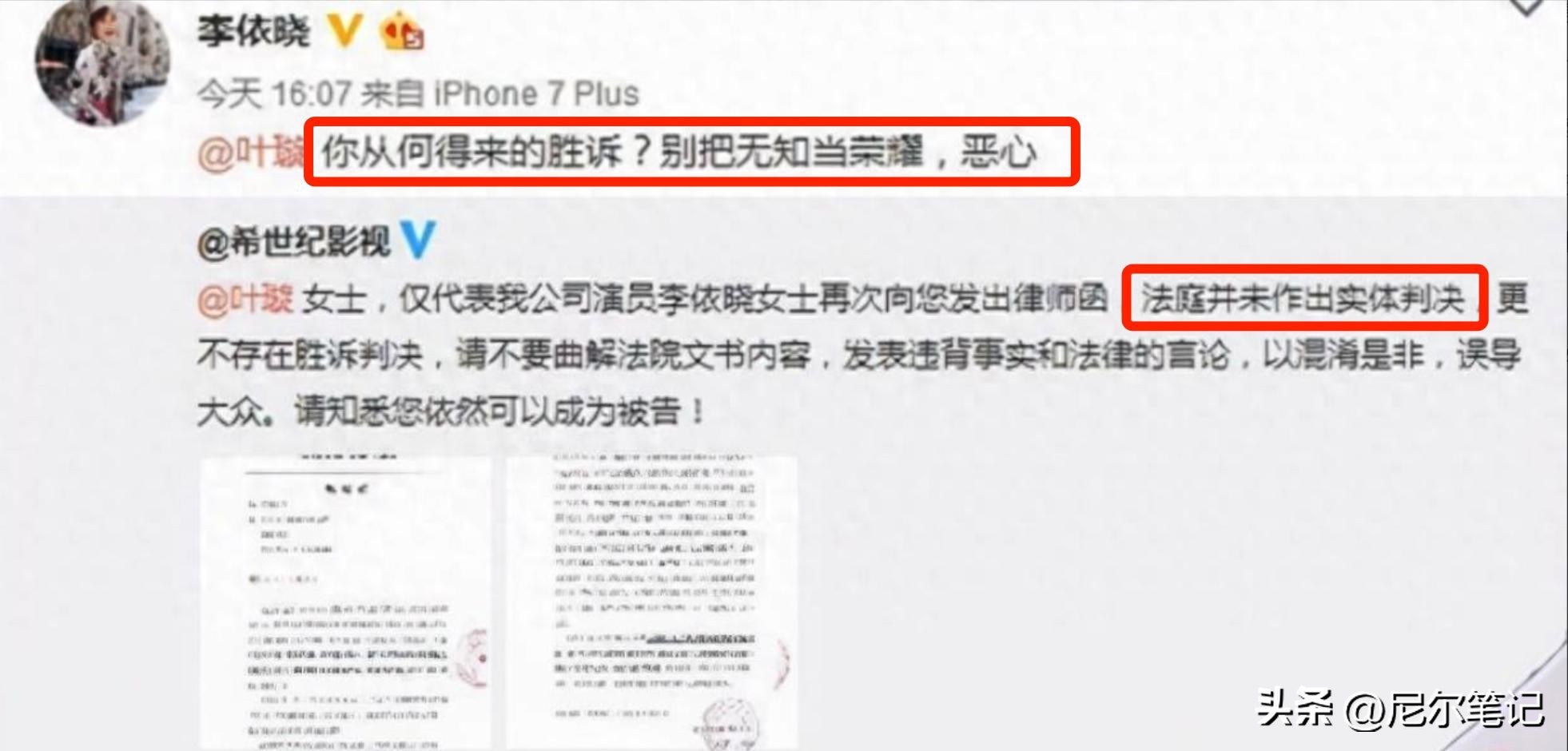 在这样颠倒黑白的言论下,李依晓气的把她告上法庭。