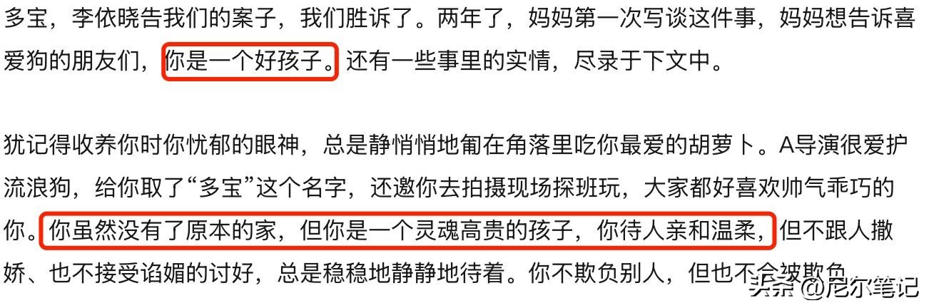 但叶璇却在微博发布“多宝,李依晓的案子,我们胜诉了”。