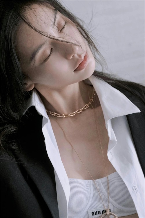 你看她留着微卷的长发,白衬衣配上黑色的外套,露出马甲线,ji简的色彩黑与白搭配出时尚女郎,手里的早餐和慵懒的造型,早餐大pian慵懒感十足。