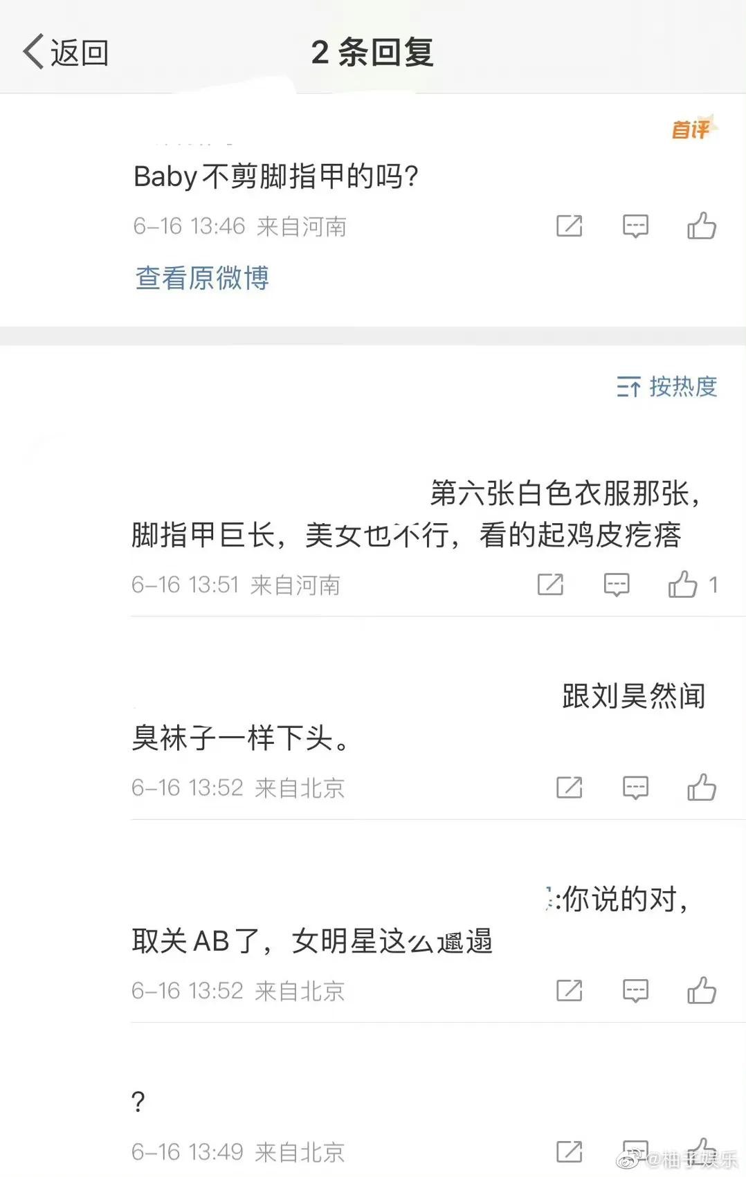 这不,某些网友就开始拿着放大镜在美美的图片里找瑕疵了,说她脚指甲过长,不爱干净,邋遢,甚至要取消关注。我看大可不必这么严苛,为什么不仔细想想,既然是拍za志,肯定是精致到每一根头发丝的,何况是脚趾甲呢?