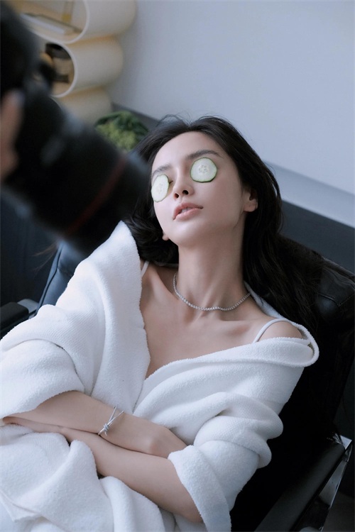白色的浴袍,眼睛上还敷着黄瓜片,真是惬意啊!