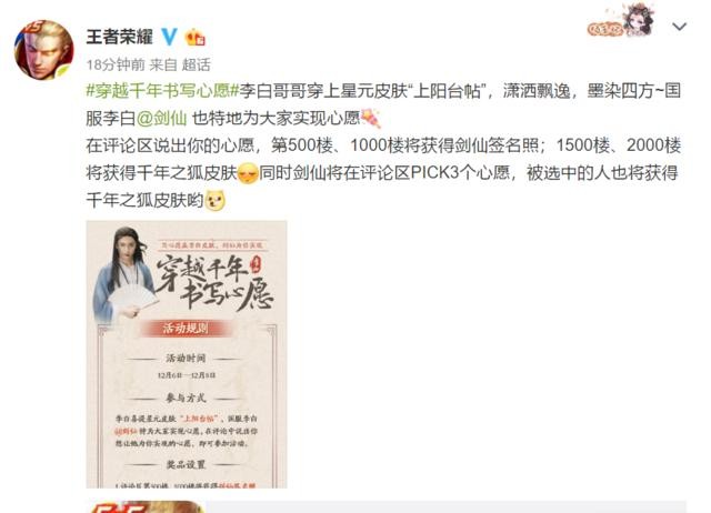 他曾作为官方承认的国服第一李白出席了线下活动,在李白上阳台贴的星元皮肤中以本人的形象的加入到官博活动中,剑仙成了网友心中的李白角色代言人。