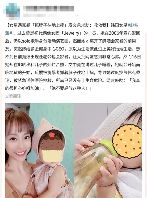 日前,韩国知名女星赵敏雅,在社交平台曝出自己被老公家暴的事情,该事情曝光之后,引起无数人的热议,甚至她还提到,每次他打我的时候,都是趁着孩子睡着之后动手,因为自己的力气很小,无法反抗他,最终只有报警来解决这件事。
