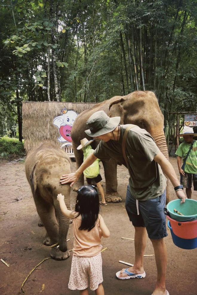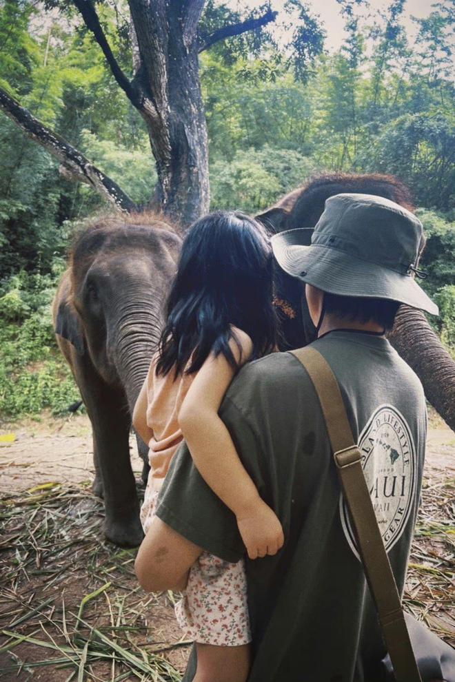 不难看出,他们一家此行泰国特别开心,宋宁峰抱着女儿与大象近距离接触,尽享亲子间的欢乐。