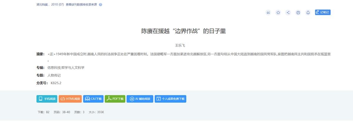 王乐飞.陈赓在援越“边界作战”的日子里[J].湖北档案,2010,(07):38-40.