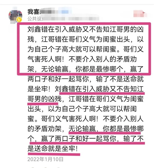 有网友认为,在这起悲剧中刘鑫和江歌都有错。刘鑫错在引狼入室,不应该把危险甩给朋友,而后又没有感恩之心。