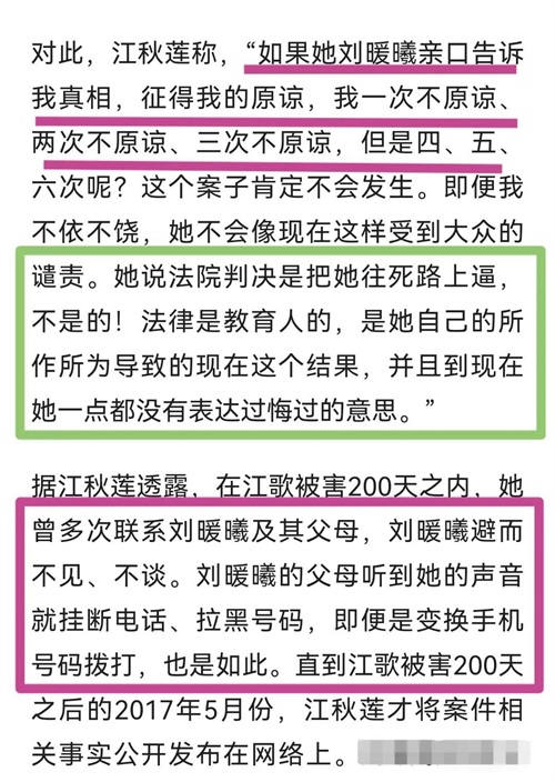 2022年1月10日,江秋莲起诉刘鑫侵犯江歌生命权纠纷案,迎来了一审,法院判定刘暖曦有过错,需赔偿69.6万元。