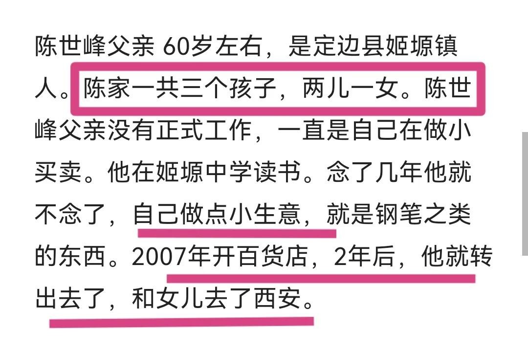 据说,陈世锋的父亲还会动手打妻子,孩子们从小耳濡目染。百货店转让出去以后,就一直和女儿生活在西安。