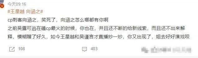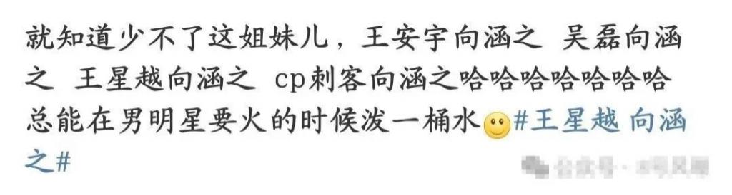 很多网友认为王星越这次恋情就是 " 人红是非多 ",是向涵之在蹭热度,或许也不是没有道理。