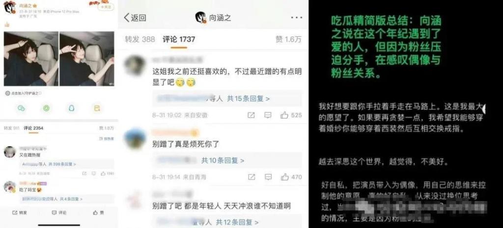 但在风口浪尖上,向涵之之后不仅秒删,还在备忘录发长文疑似吐槽粉丝压迫不许自己偶像谈恋爱 ... 导致不少网友都在她的评论区吐槽 " 别蹭了 "。