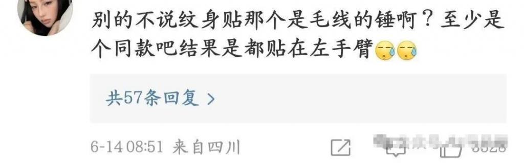 不过,对于纹身这一点,网友大多不认同:原以为是贴了同款或者定制的纹身,结果居然是 " 都贴在左手 ",这也能说是好巧?
