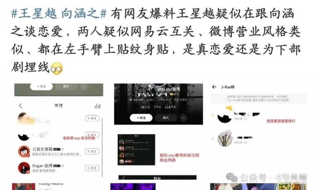 近日,有网友爆料王星越疑似在跟向涵之谈恋爱,两人疑似网易云互关、微博营业风格类似、都在左手臂上贴纹身贴等,引起热议。