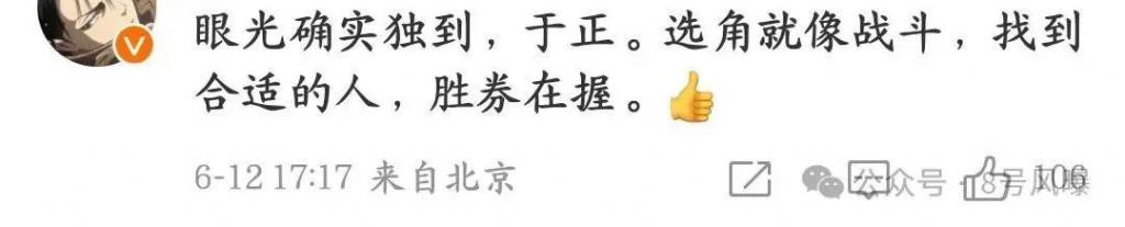 选角就像战斗,角色的出圈离不开演员的演绎,许多网友表示于正的眼光确实很独到。