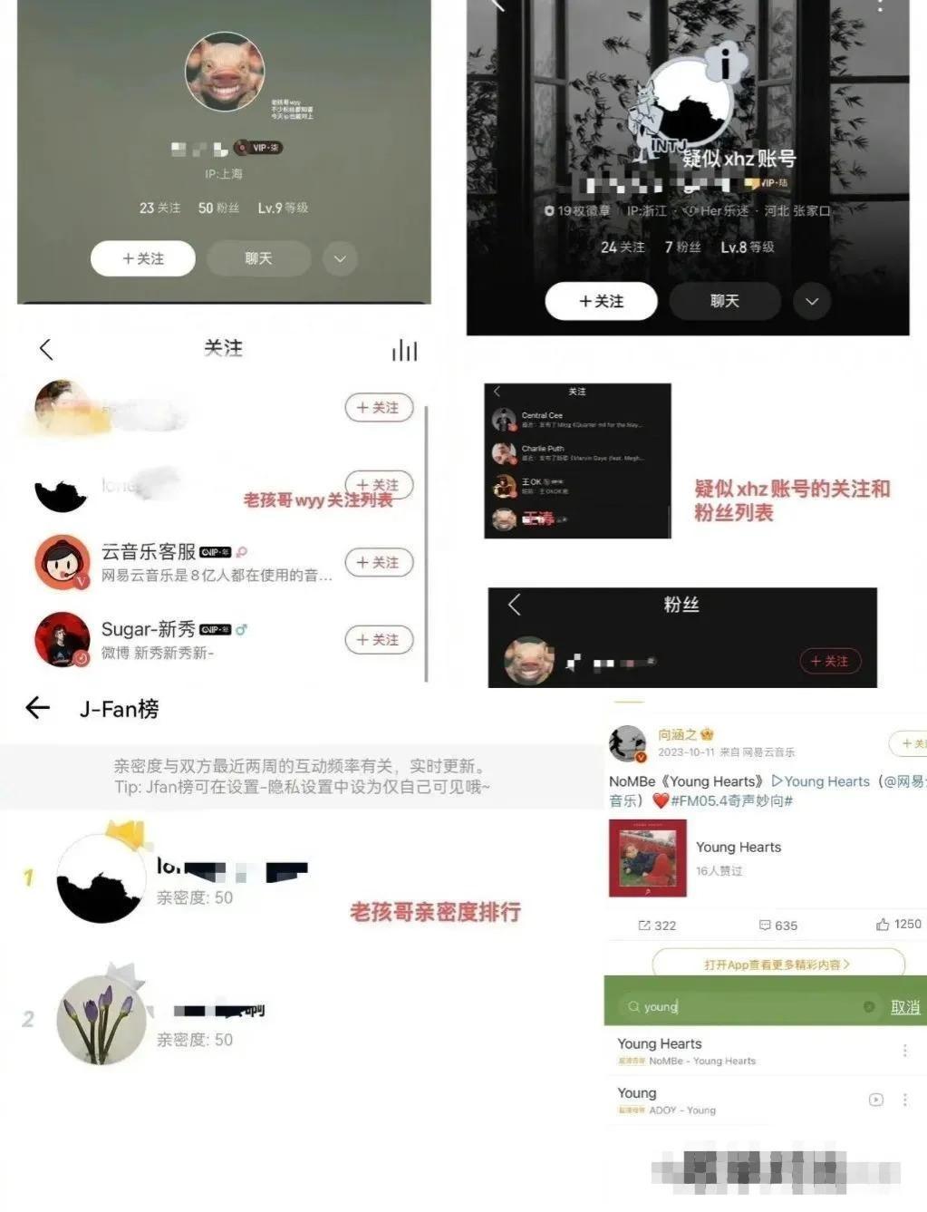 爆料网友贴图指出两人的网易云账号疑似互关,女方是王星越账号亲密度排行第一,两人的歌单也有很多重合。