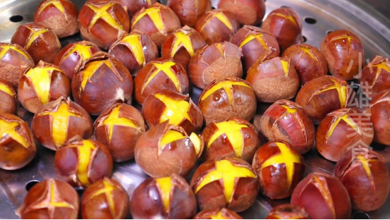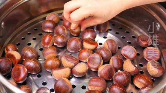 7、切好的板栗,经过蒸制这一步,再去剥板栗壳的话,是非常容易的,接下来我再给大家继续讲解,如何去蒸板栗。