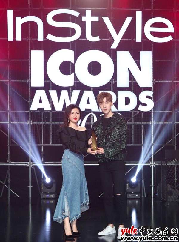 InStyle主编唐霜为白梓轩颁发年度最具活力偶像大奖。