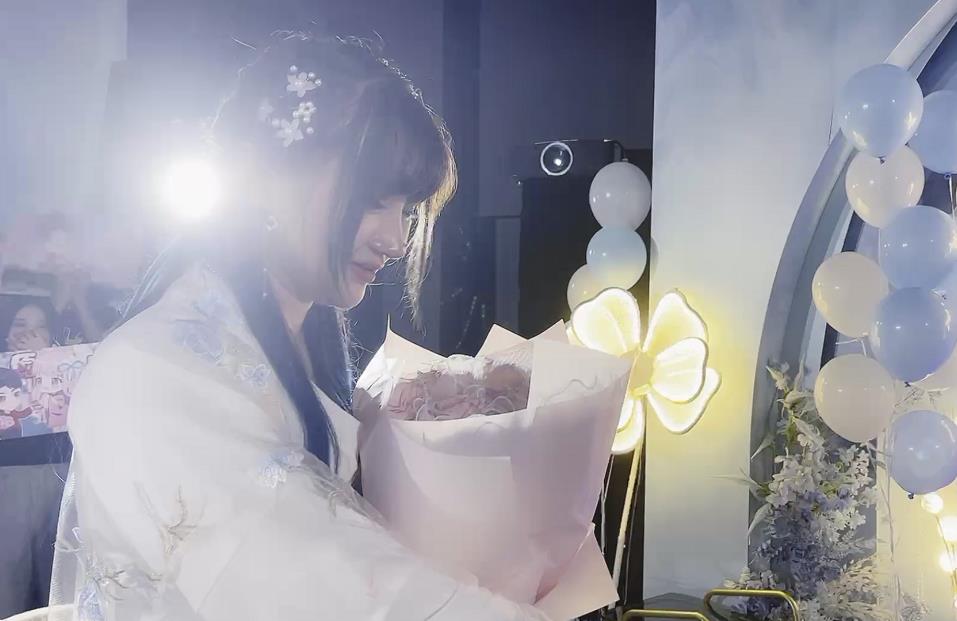 随着剧本的进行,兮兮被带到了求婚现场。两人从相识到相知的过程被重新演绎了一遍,播放完视频之后,梦泪也穿着西装缓缓走出。梦泪单膝跪地,拿出钻戒求婚的时候,现场的所有人都在说“嫁给他”,梦泪说话的时候已经明显有些哽咽了,兮兮也感动落泪。梦泪一直都是个内向的人,有点不善言辞,可能兮兮也没想到梦泪能准备这么隆重的求婚仪式。整个求婚过程都在企鹅电竞进行了直播,全网都见证了他们的爱情。