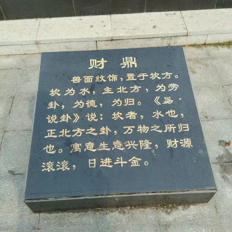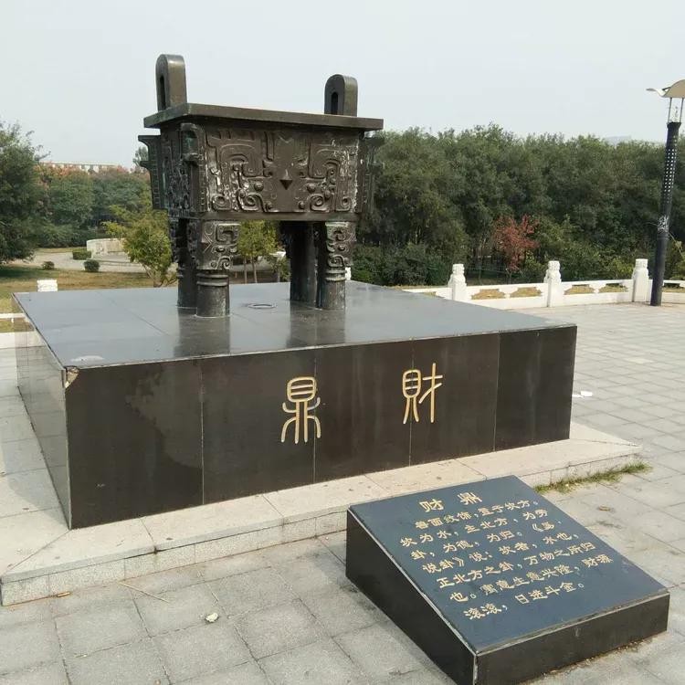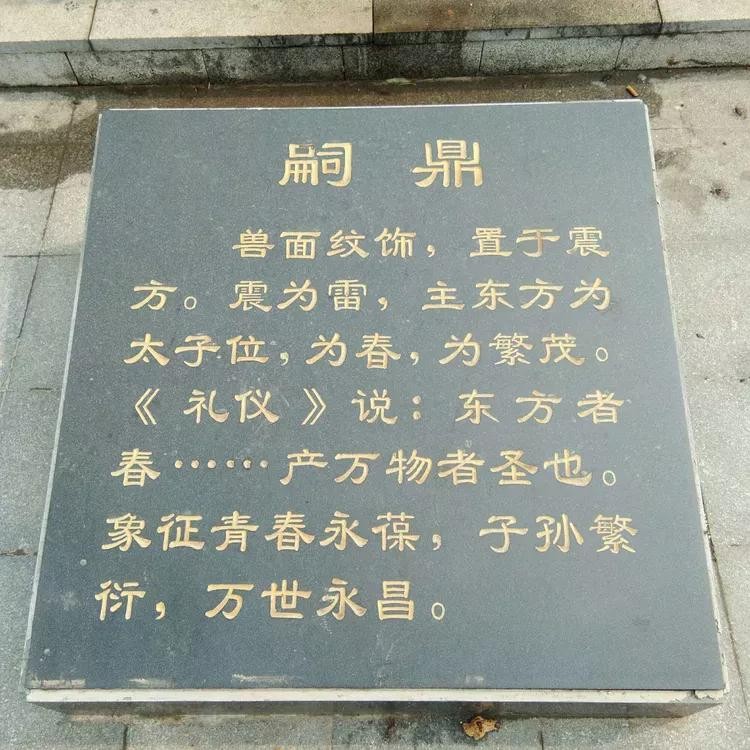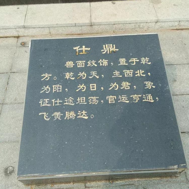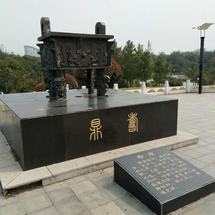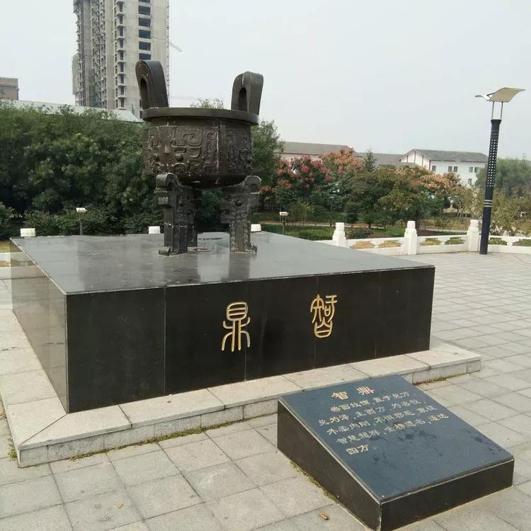 问鼎天下:公元1700年,商汤在此建都(今谓之曹亳),成为商朝早期的政治文化中心,被历史学家称为“华夏第一都”。通过雕塑再现曹县已经久远的辉煌。地形高3米,上铺装为八卦图案,上布九鼎,它是九州的象征,也是国家政权的象征,夏、商、周三个朝代,都把它作为世代相传的国宝,它标志着天子的尊严,王位的神圣。宝鼎置于中间位置,其他八鼎分别为爱鼎、寿鼎、财鼎、仕鼎、安鼎、丰鼎、智鼎、嗣鼎,按八卦之位放置。
