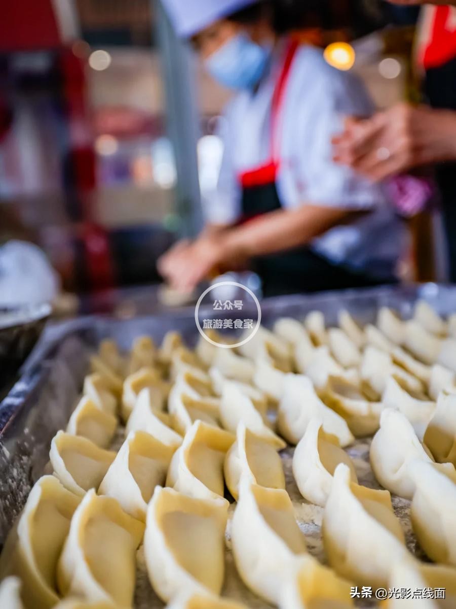 问了店家,锅贴好吃的秘诀有三点。一是面皮,需要先用开水烫,然后手工和面,再根据天气调整醒发时间。二是选肉,店里的猪肉、牛肉用的是热气肉,也就是半夜屠宰、凌晨上市的新鲜肉。三是人工煎,师傅可以根据经验灵活调整,让每只锅贴都能受热均匀,这是电锅做不到的。