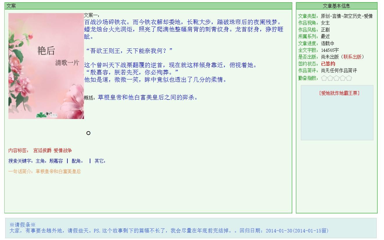 【评价】:这篇文算是清歌的标准文笔的作品,水准上。