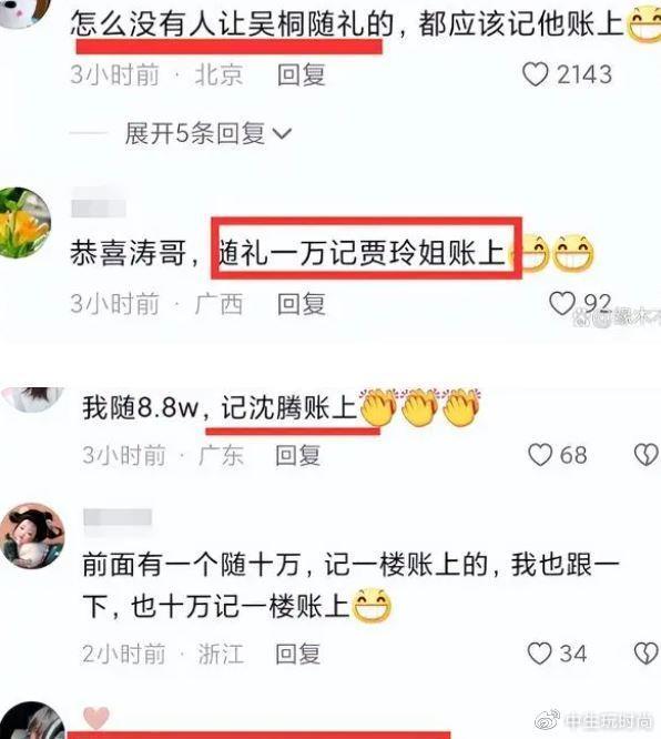 这个好消息得到了网友们的热烈祝福。不仅沈涛的粉丝留言表达祝福,而且其他明星的粉丝也纷纷发文表示要随礼记在他们头上。