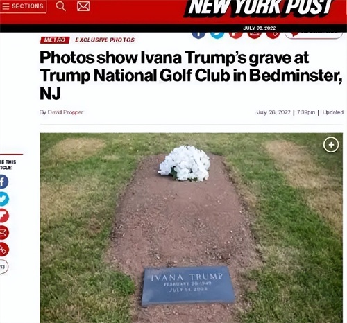 伊万娜去世之后,特朗普将她葬在了他的高尔夫球俱乐部,墓地装饰的非常不起眼。