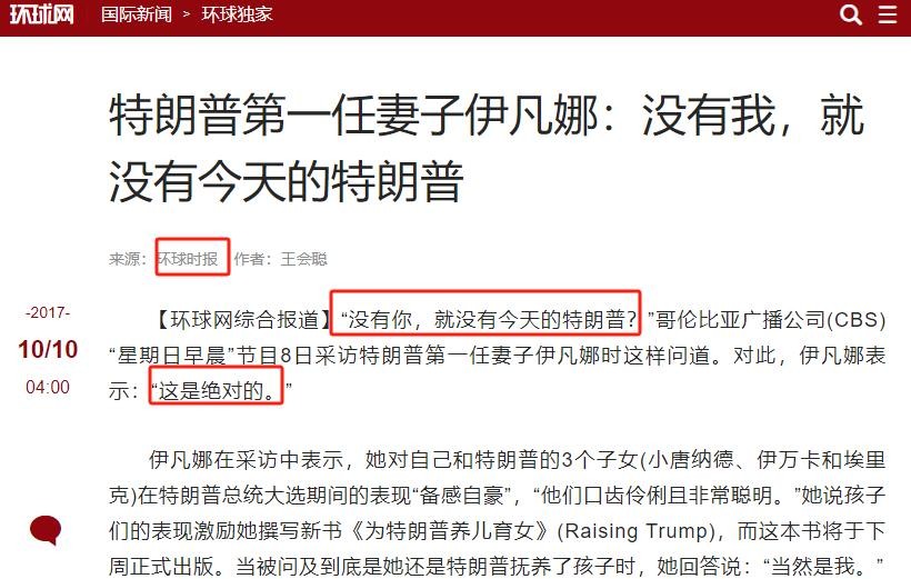 参考资料:【1】环球时报:《特朗普第一任妻子伊凡娜:没有我,就没有今天的特朗普》
