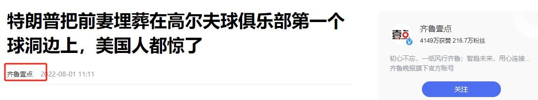 【2】齐鲁壹点:《特朗普把前妻埋葬在高尔夫球俱乐部第一个球洞边上,美国人都惊了》