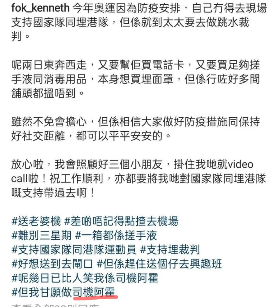 这次奥运会终于能陪伴老婆身边,霍启刚是肉眼可见的开心,