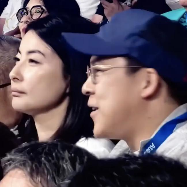 而在当裁判之余,比较意外的是,比赛间隙,她还带着丈夫霍启刚去看了国乒的比赛~