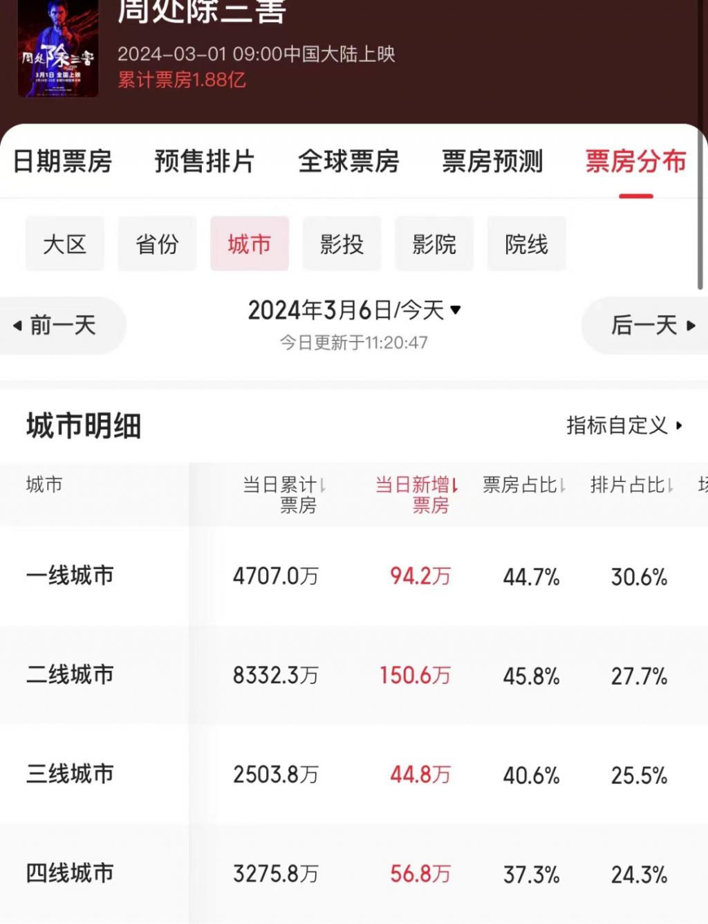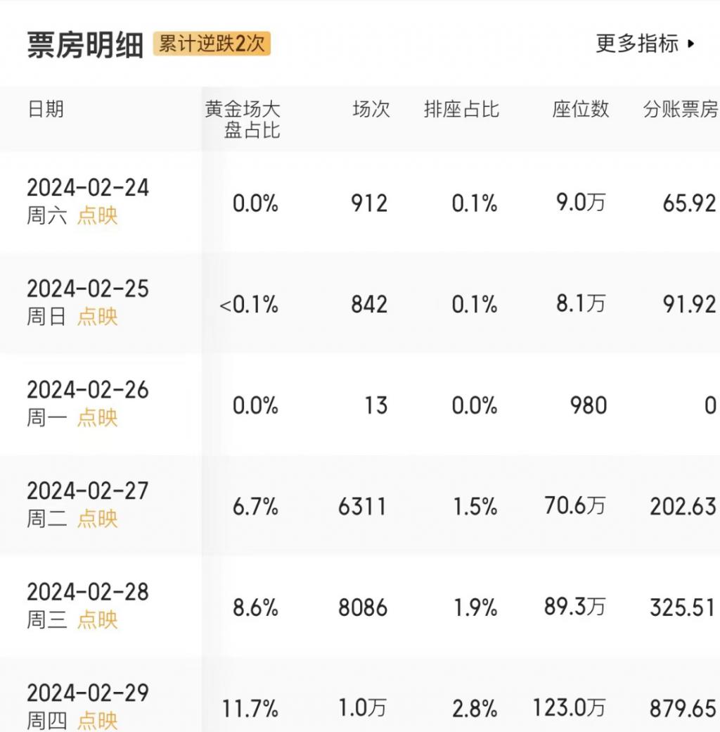 所以这次临时换盘导致的结果,就是部分二三线城市院线上映当天排片全部更改,使得首映日排片暴跌至 8.9%。