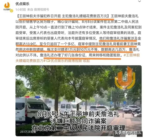 事情的起因,还要从一则匿名爆料说起,有网友爆料称,王丽坤的“隐婚丈夫”詹某某,因涉嫌一桩金额高达9亿的学区房诈骗案被警方逮捕,更令人咋舌的是,在案件调查过程中,詹某某还被曝出嫖娼,且花费高达数百万,消息一出,舆论顿时炸开了锅